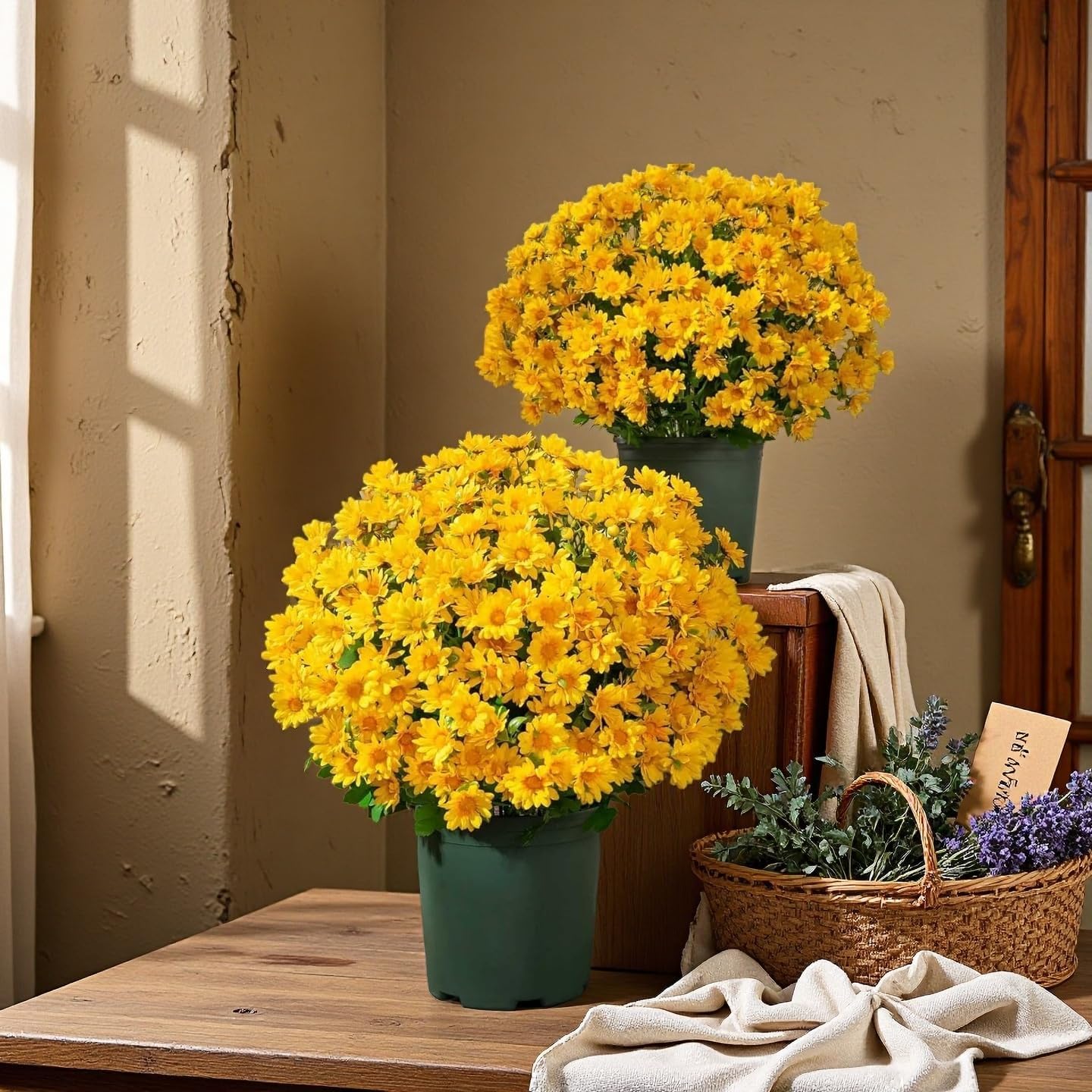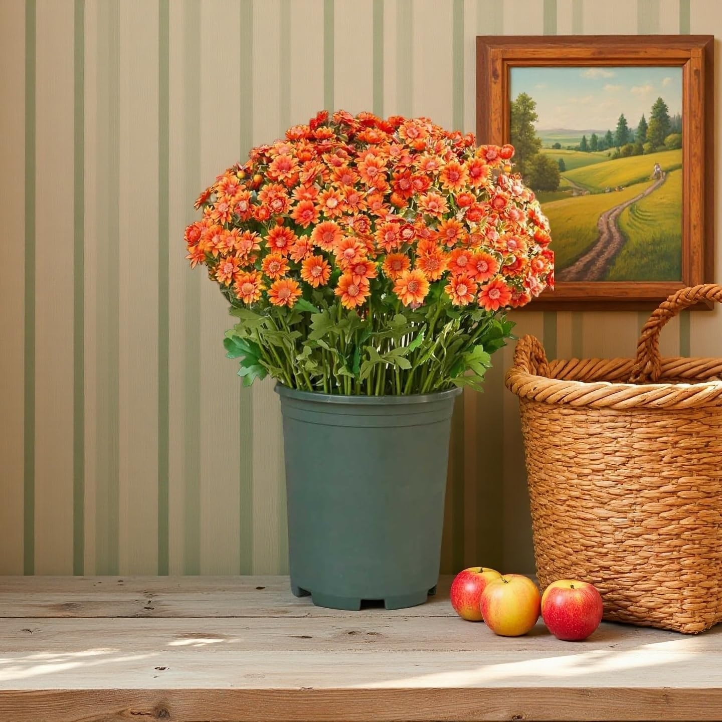 Product Specifications: Size: 12.59in. Material: Silk flowers + UV-resistant plastic. Use: Ideal for covered outdoor or indoor settings. Care: No watering or sunlight needed; wipe clean when needed.
