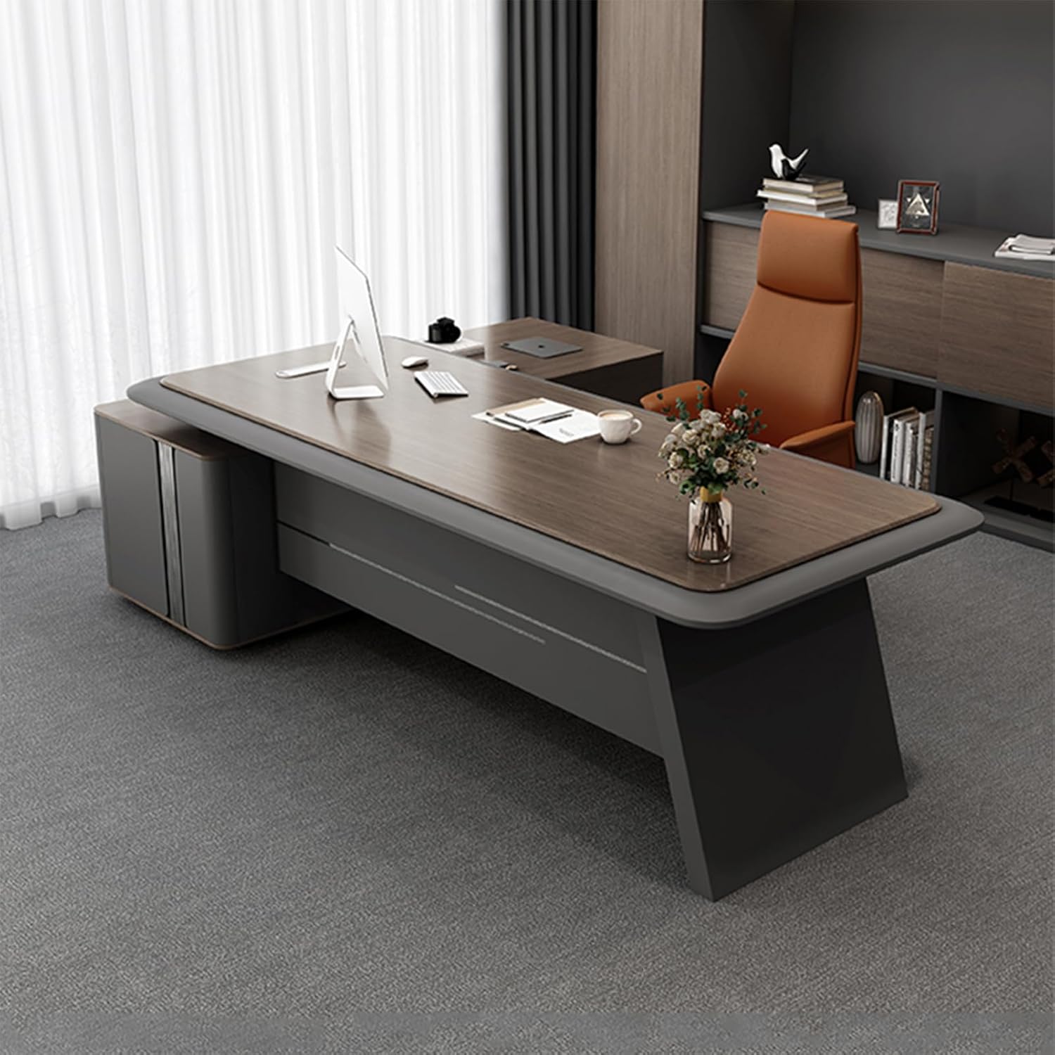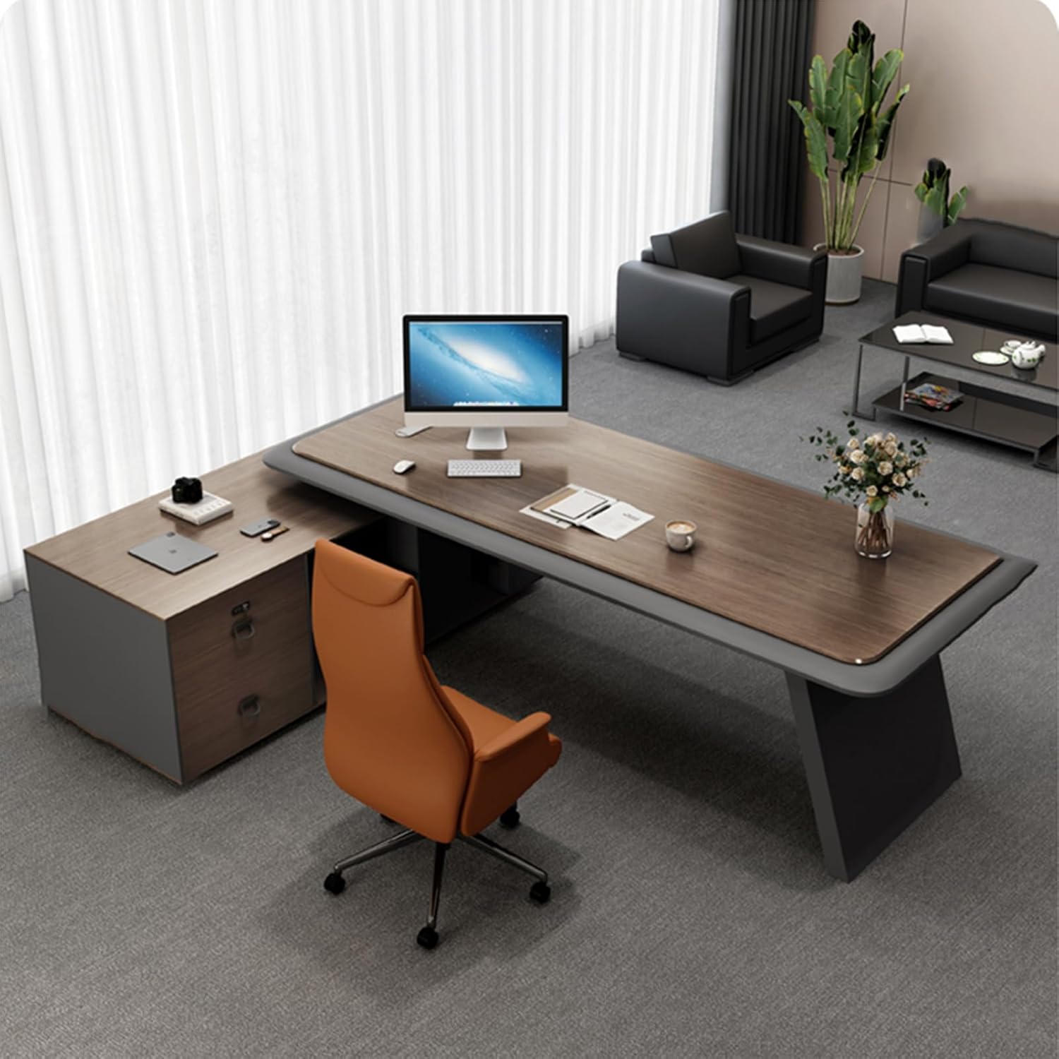 Specifications:Shape: L-shapedType: L-shaped deskMaterial: Wood, MetalDimensions: 102"L x 63" W x 29.5"H;Drawer: YesPower socket: YesSide cabinet direction: Left, RightApplicable places: Home, OfficeSide cabinet direction: L: Left; R: RightPackage includes:Desk x 1Installation accessories x 1