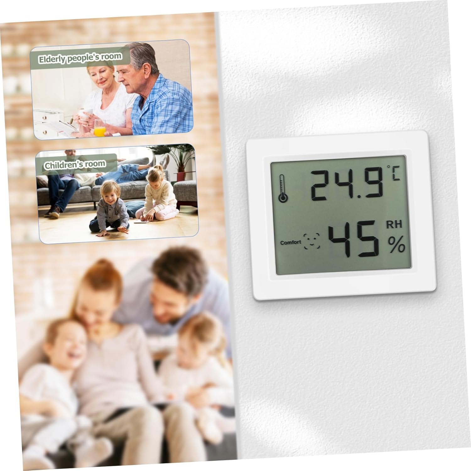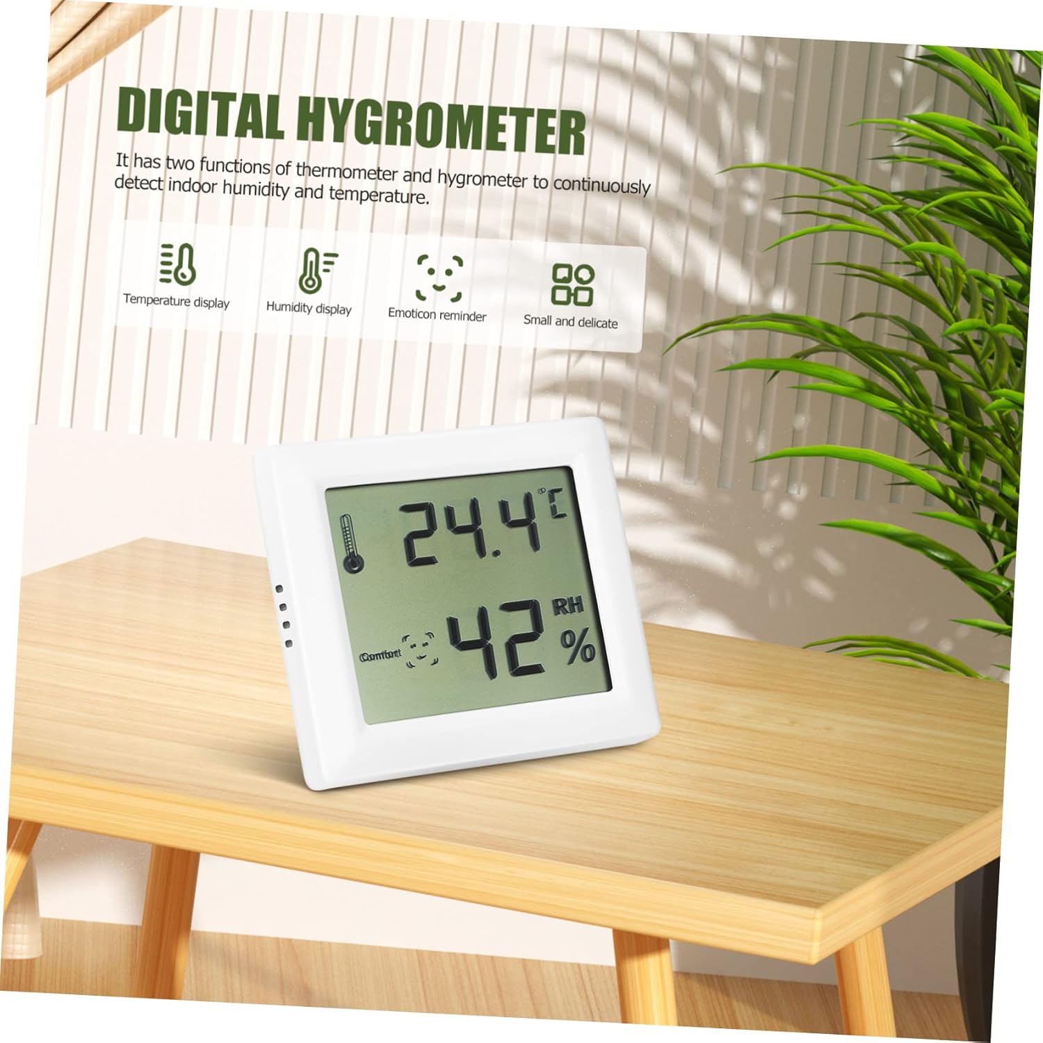 Package List 6 x Hygrometer Thermometers Features -Comfort display range: room hygrometer Comfort 20-26℃/50-70%, display: 3 measuring tool -Humidity measurement range: 10%- humidity gauge - switching unit: ℃/℉ room Humidity: humidity>70%, display: 2 hydrometer for humidity Dry: Humidity<50%, display: 1 room monitor -Size: About 8.50X7.50X1.30cm/3.34X2.95X0.51in indoor hygrometer -Color:White digital - measurement resolution: 0.1°C (if the exceeds this range, it will display or LL) home hygrometer -Humidity measurement accuracy: ±5% humidity monitor -Material: ABS humidity sensor - measurement accuracy: ±1°C hygrometer - measurement cycle: 10 seconds humidity measuring gauge -Humidity measurement resolution: 1% hygrometer for room - measurement range: -10~60℃ -Recommended for families with babies, seniors, and pets indoor . -It has two functions and a hygrometer, which can provide convenience for your daily life and work gauge. -The design is compact and simple and can be installed standing or hanging humidity meter.Goods Informationhumidity measuring gauge The product is compact and lightweight, can easily place this indoor anywhere you want.humidity meter Recommended for families with babies, seniors, and pets.humidity sensor Our hygrometer is made of material that will serve you for a long time