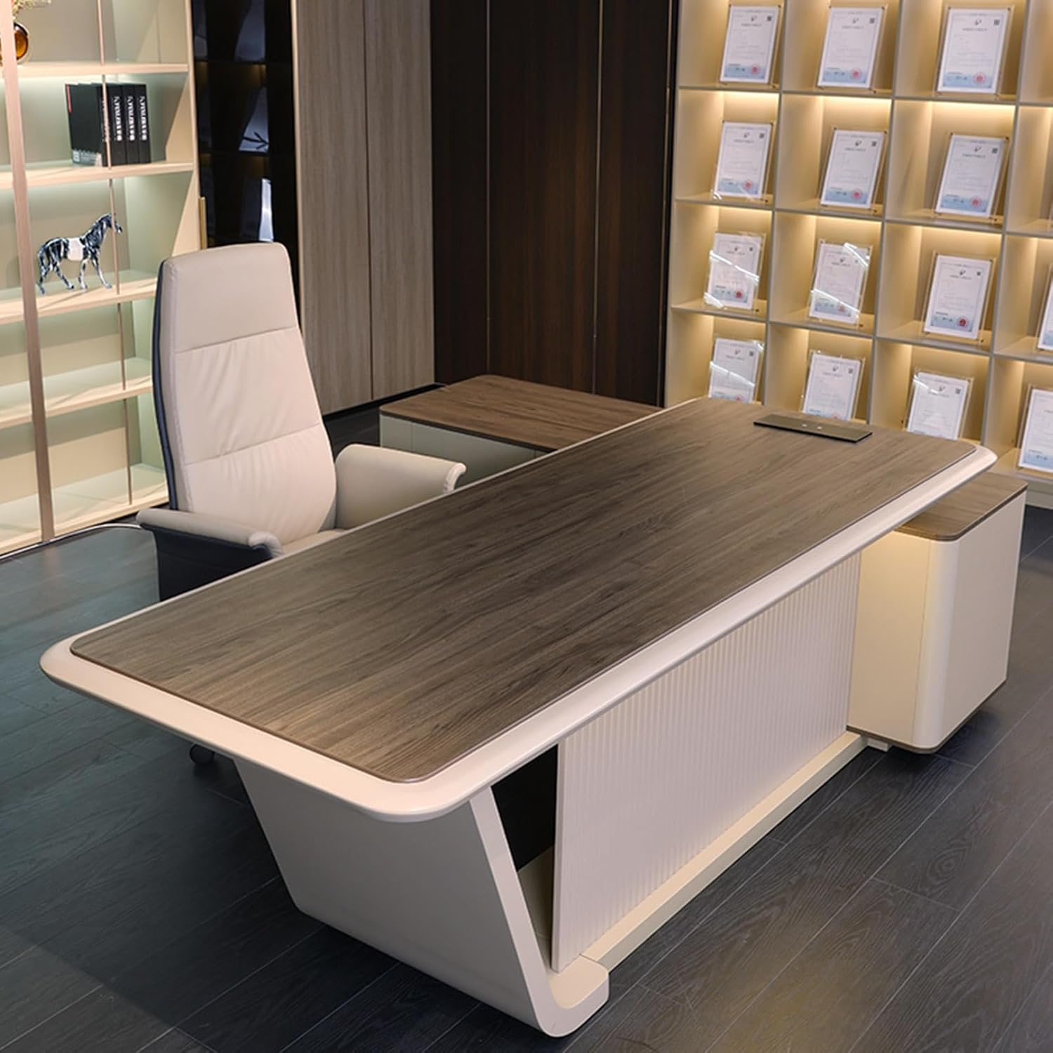 Specifications:Shape: L-shapedType: L-shaped deskMaterial: Wood, MetalDimensions: 94"L x 71" W x 29.5"H;Drawer: YesPower socket: YesSide cabinet direction: Left, RightApplicable places: Home, OfficeSide cabinet direction: L: Left; R: RightPackage includes:Desk x 1Installation accessories x 1