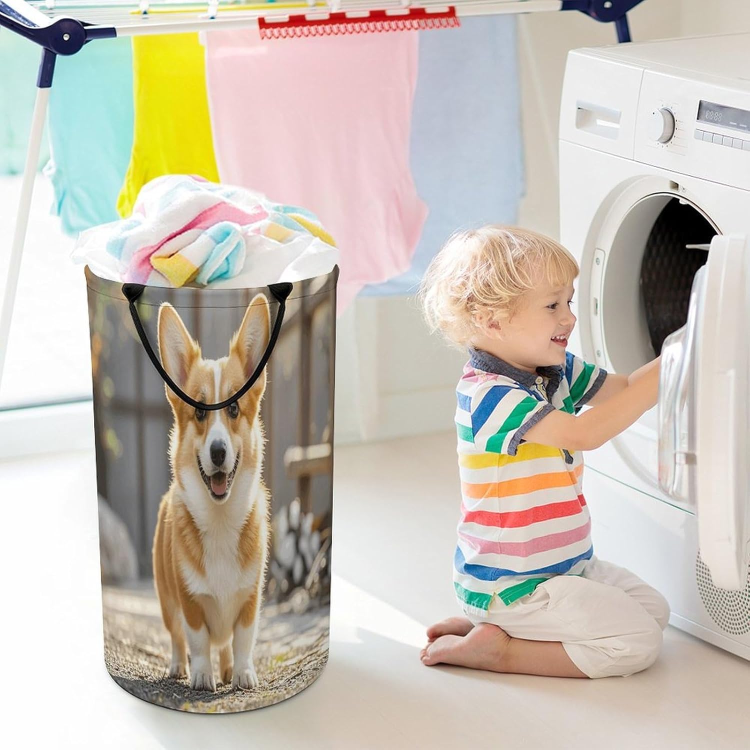 Tired of messy piles of dirty clothes cluttering your bedroom, bathroom, or laundry room? Meet your new organizational essential: the Large Collapsible Laundry Hamper, designed to blend functionality, and style seamlessly into your daily life. Whether you're a busy parent, or a frequent traveler, this versatile hamper Dirty clothes hamper clothes hampers for laundry Large Tall Clothes Basket Bin Decor Storage of Dirty Clothes is crafted to simplify your routine and elevate your space.With its generous size, this hamper easily handles a week's worth of laundry for individuals or small families, eliminating the hassle of multiple trips to the washing machine. From bulky sweaters and bed linens to towels and clothes, Removable Laundry Bags Laundry Hamper Bag Large Laundry Basket effortlessly accommodates all types of fabrics. Say goodbye to overflowing baskets and hello to a tidier, more organized home.More than just a Foldable Washing Bin Collapsible Laundry Bag Playful Corgi laundry basket, this hamper adds a touch of modern elegance to any room. Its neutral, minimalist design complements bedrooms, bathrooms, closets, RVs, campers dorms. Use Waterproof Washing Bin Decorative Tall Hamper Large Storage Basket to store blankets, or seasonal items, its versatility knows no bounds.