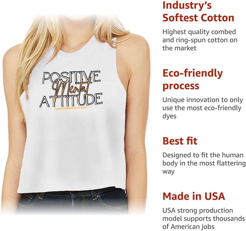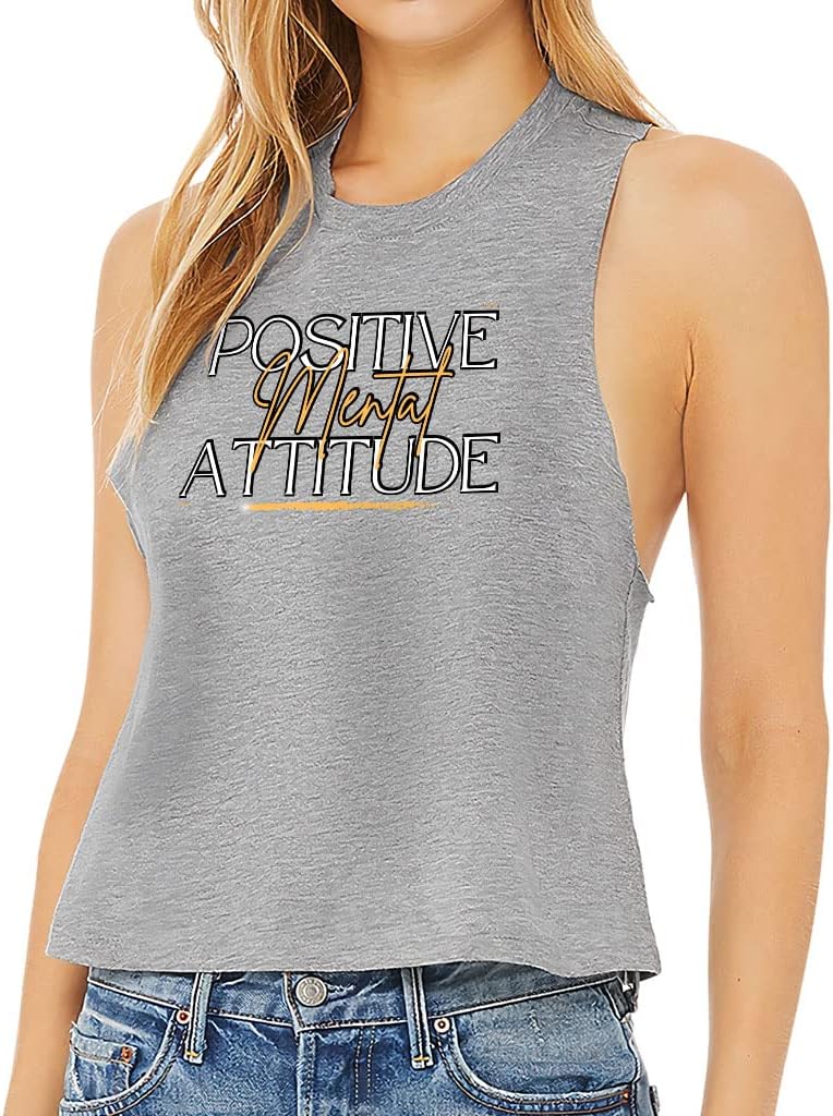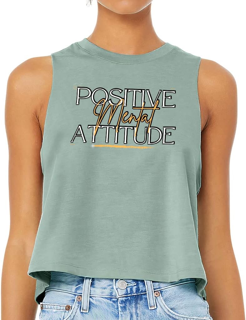 Cute and flattering Positive Mental Attitude Racerback Cropped Tank is suitable for most indoor or outdoor activities, such as gym, yoga, running, hiking, beach or relaxing around the house. Pair Phrase Women's Tank with your favorite sports bras, especially strappy ones, and high-waisted leggings, then you will enjoy cool and comfortable exercise throughout the summer.