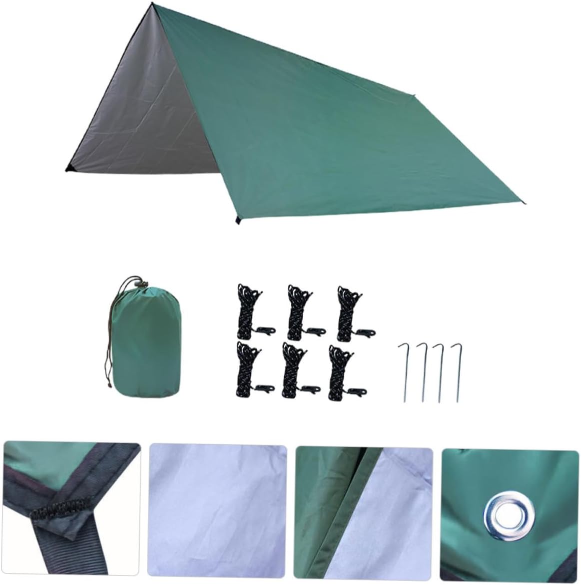 Package List 1 2 x storage bags 6 x ropes 4 pegs Characteristics - Size: 300.00X300.00X0.01cm/117.90X117.90X0.004in Tent. - Material: Oxford Fabric Tent for Outside. - Color: Green Waterproof Tent. - Brings more convenient for you and makes your camping trip more delightful and comfortable! Tents - The product is in a simple design, but it is very useful and Hiking Tent. - This camping tent is lightweight, you can carry it easily and conveniently Outside Tent. - Made of great quality material, it is and for use Camping Tent. - Send this tent to your friends who love camping as a present, making them happy Camping Tents.Goods InformationHiking Tent Lightweight and portable, this camping tent is very convenient for you to carry. Tents This camping tent is a for mountaineering, fishing, wild survival, picnic, summer beach and so on.Waterproof Tent It is made of material, which can be used long time