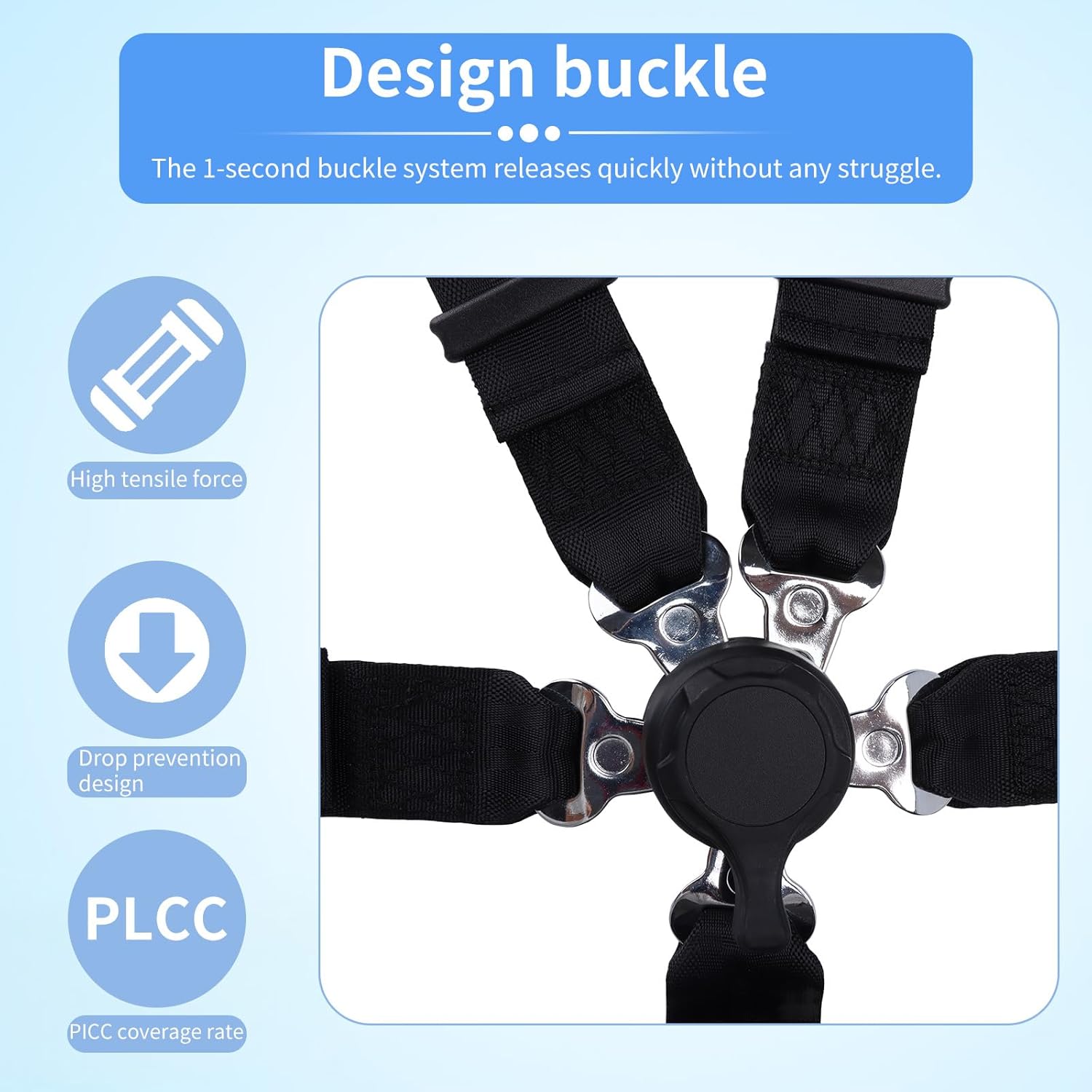 Product Description: 5 point harness set, 2inch super comfort heavy duty shoulder pads, black high strength polyester silk shoulder straps. Each product has undergone conflict testing.